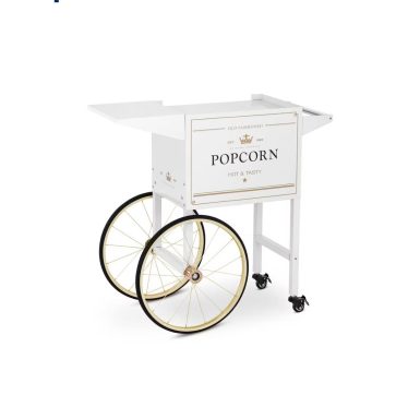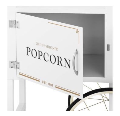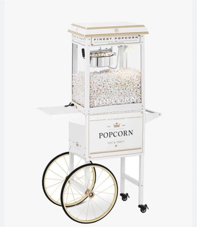 Die weiß-goldene Popcornmaschine ist der praktische Hingucker auf jedem Fest
